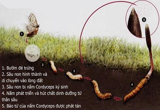 Đông trùng hạ thảo tự nhiên gồm 5 giai đoạn chính sau: